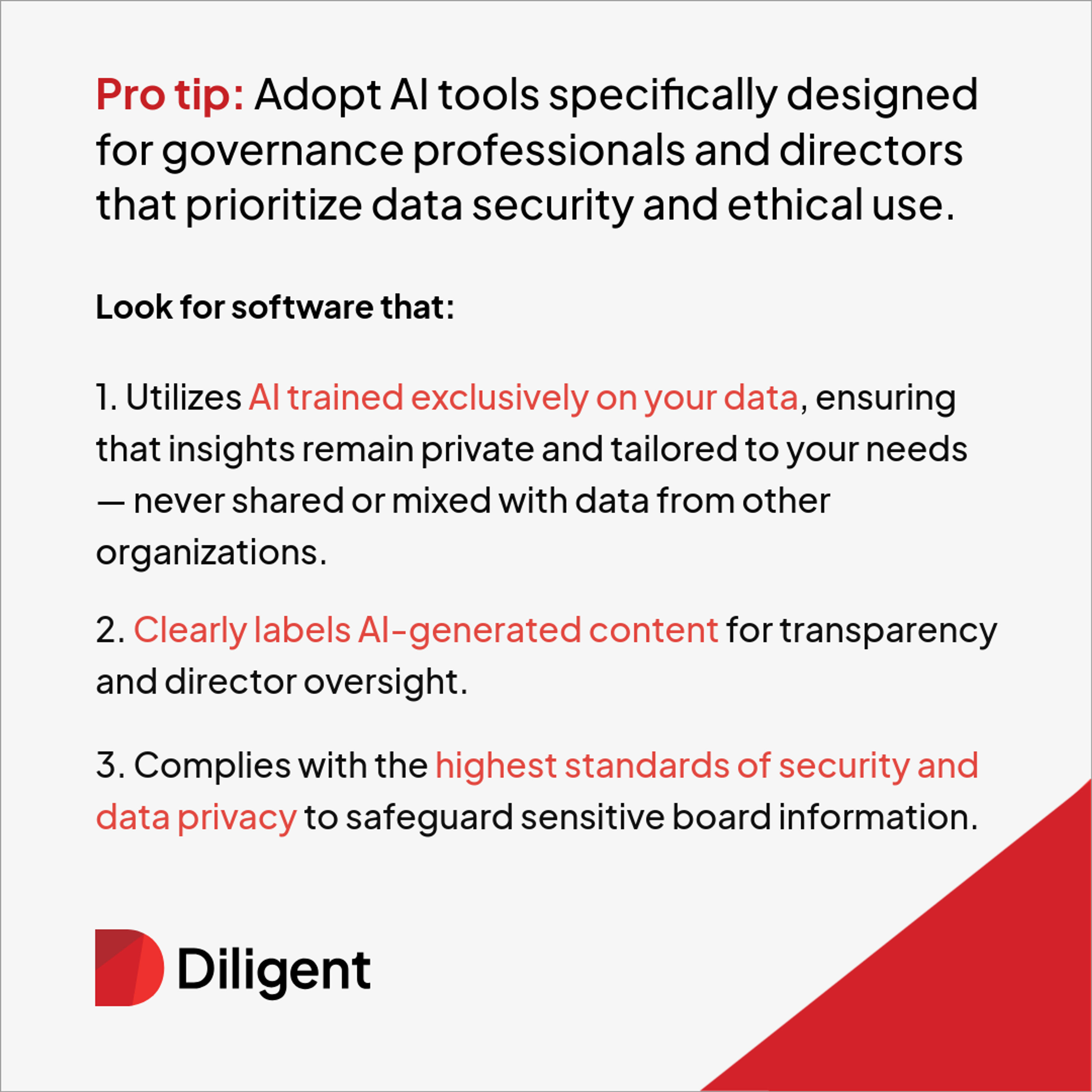 By choosing purpose-built AI with these principles, boards can confidently leverage AI's strengths without compromising their standards or security.