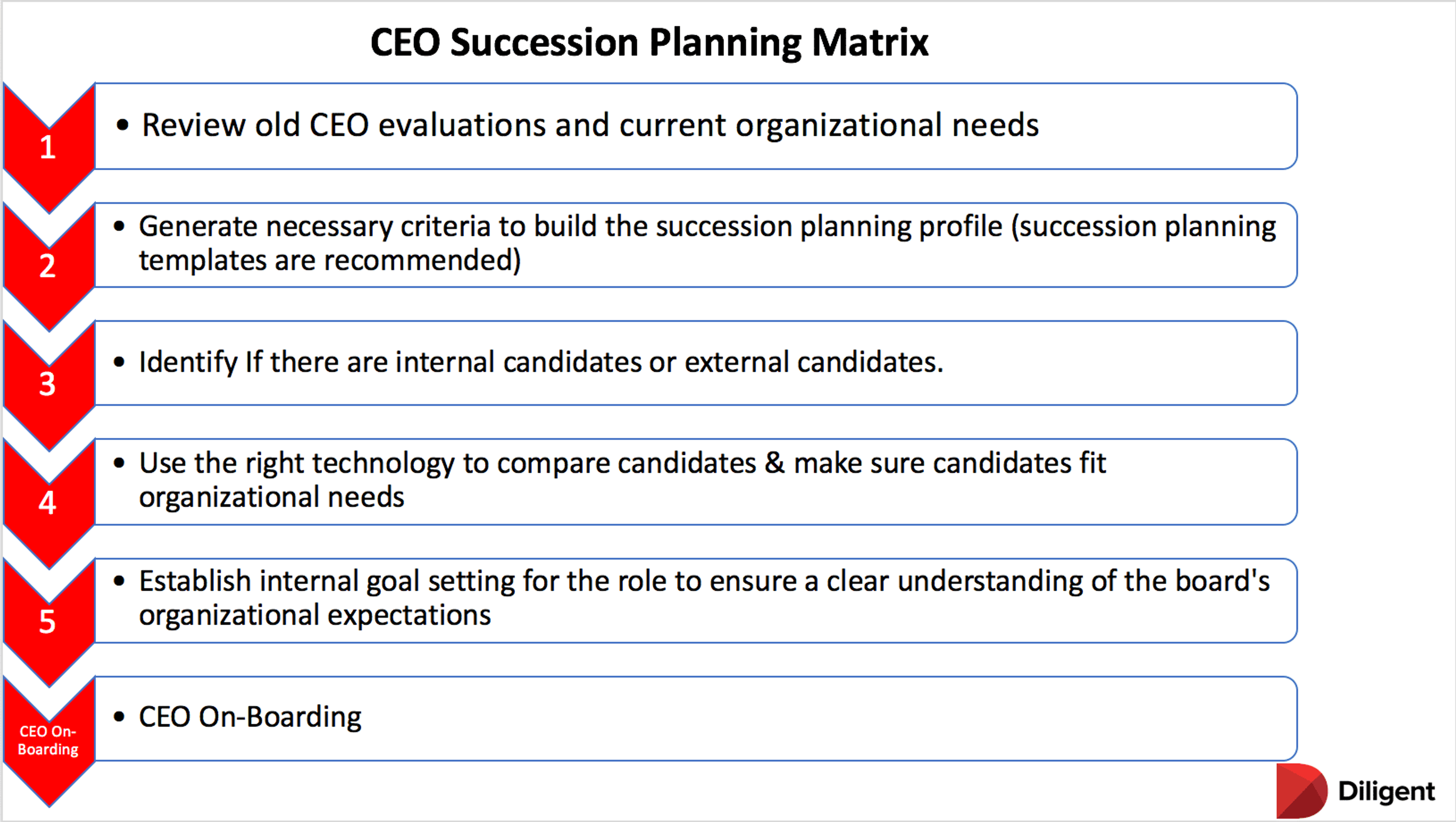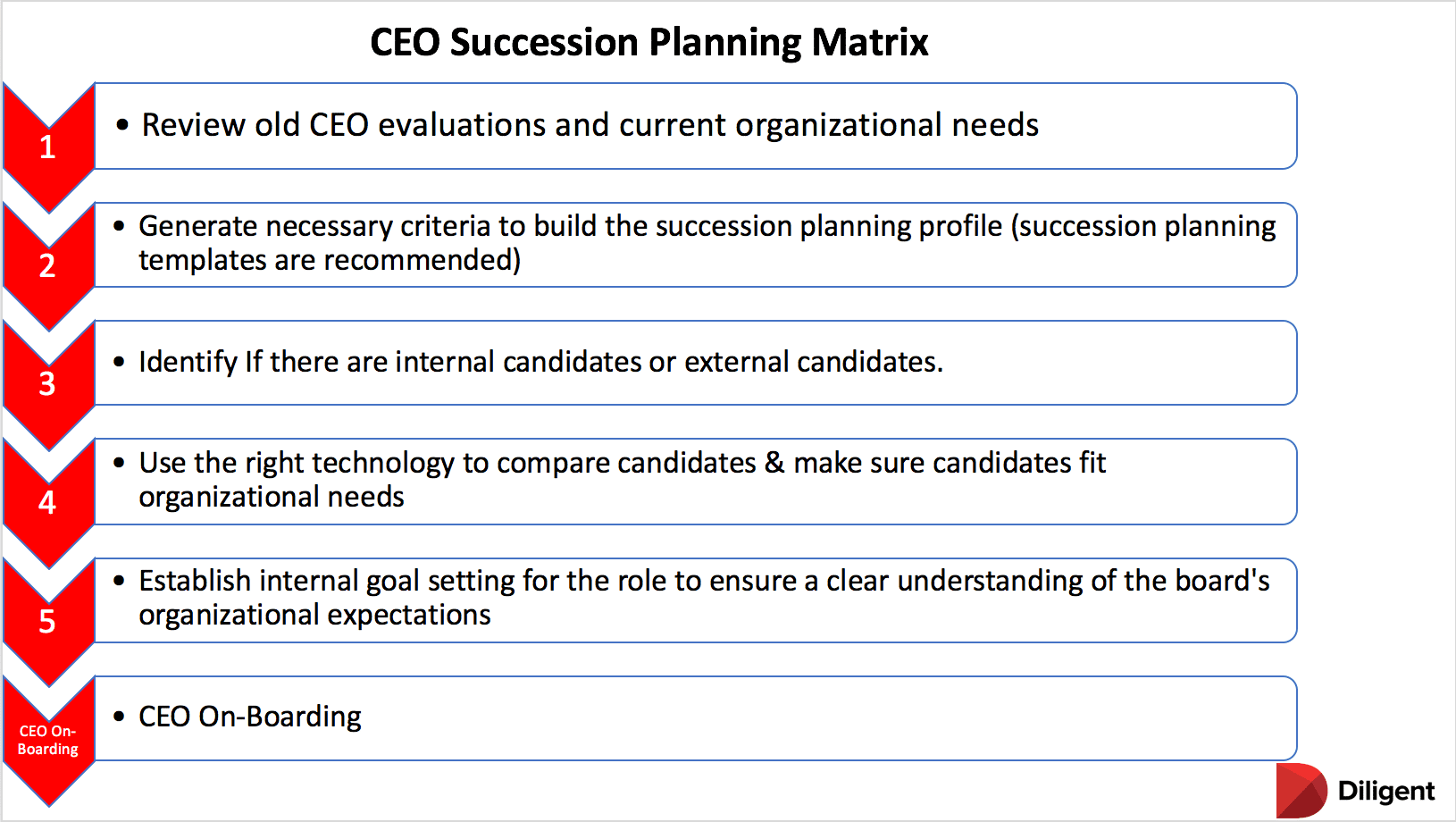 Getting the right CEO is crucial to the success of every organization and having the right CEO selection process should be top of mind for any board. Succession planning committees should always have a viable pool of CEO candidates in mind. At selection time, it's important to not only evaluate those candidates, but also keep an open mind to new candidates, including those whom headhunters recommend. The selection process requires good judgment, objectivity and open-mindedness. Selection teams should work diligently to clarify the essential qualities in candidates that will be needed to serve the future needs of the organization. The process requires a deep dive to assessing which candidates shine above the others in relation to the organization's needs. The CEO selection process should be an ongoing one that targets candidates for succession and emergency replacement. CEO selection is a necessary process that can also be sensitive. Boards can help themselves keep their planning confidential by using a board management system like Diligent Boards for secure communications and collaboration between team members.