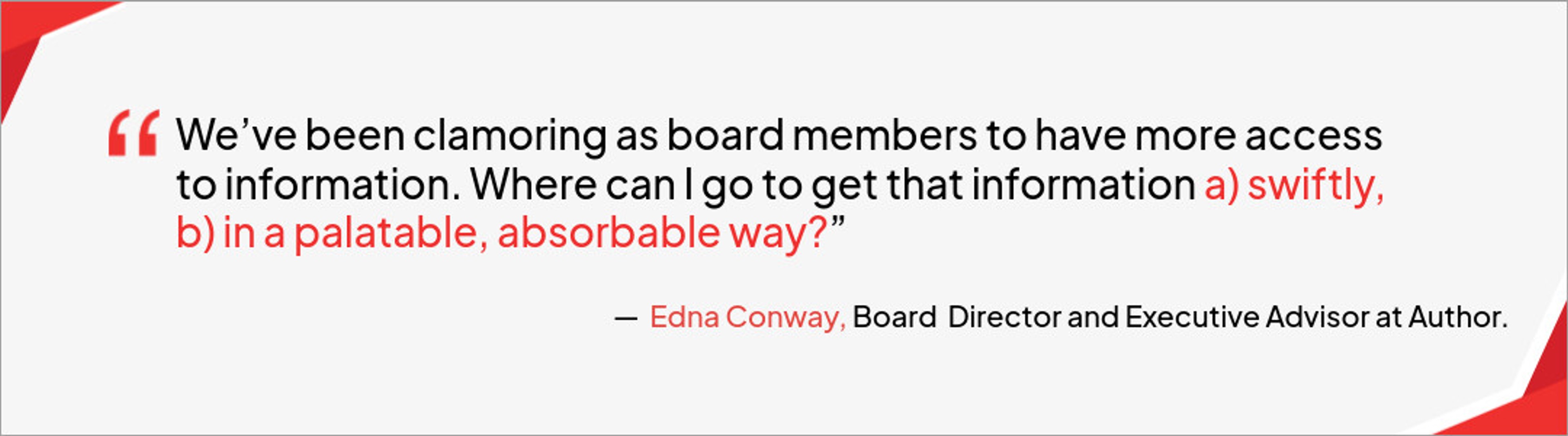 • Saves time: Boards can quickly understand the document without reading its entire contents.